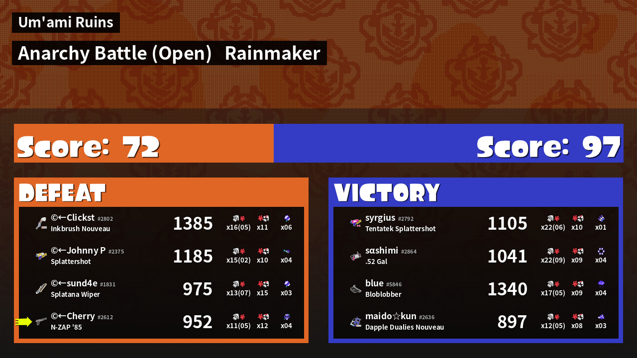 | Mode | Rainmaker - Anarchy Battle (Open) | ||