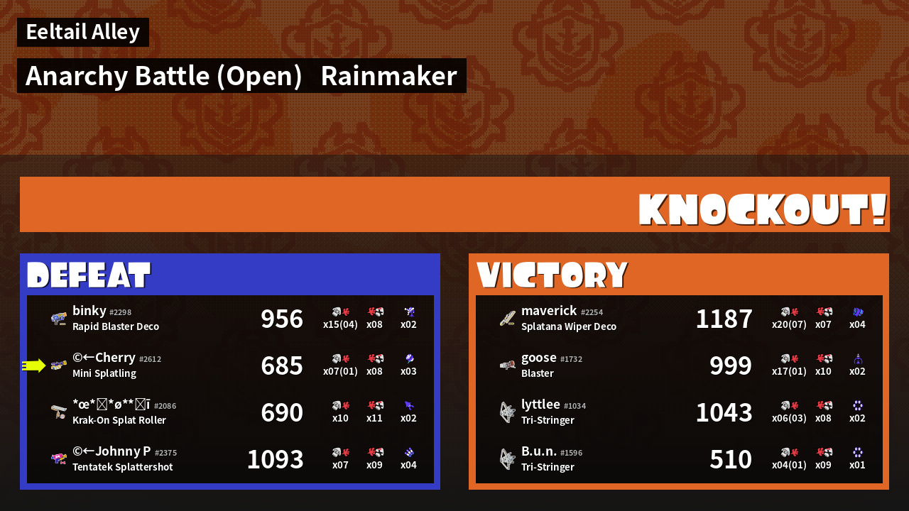 | Mode | Rainmaker - Anarchy Battle (Open) | ||
