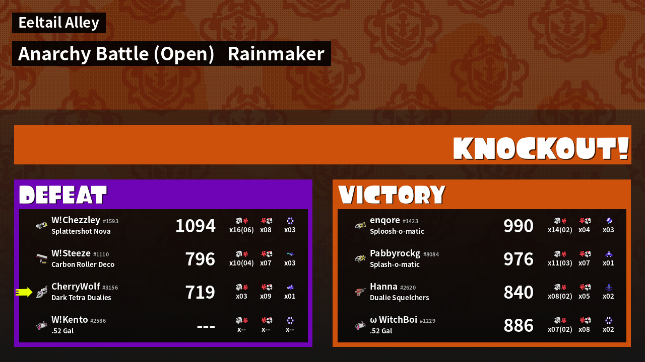 | Mode | Rainmaker - Anarchy Battle (Open) | ||