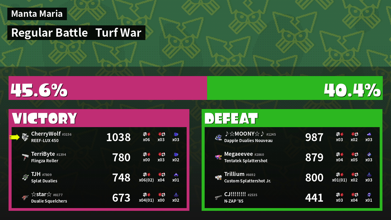 | Mode | Turf War - Regular Battle | ||