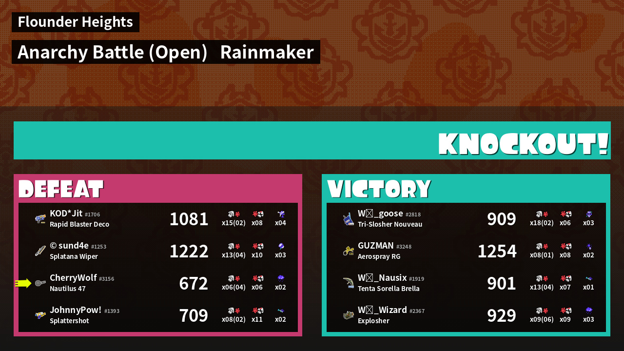 | Mode | Rainmaker - Anarchy Battle (Open) | ||