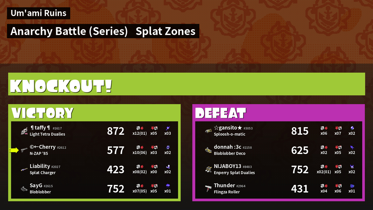 | Mode | Splat Zones - Anarchy Battle (Series) | ||