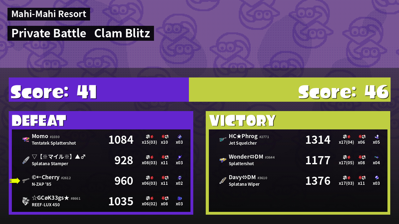 | Mode | Clam Blitz - Private Battle | ||