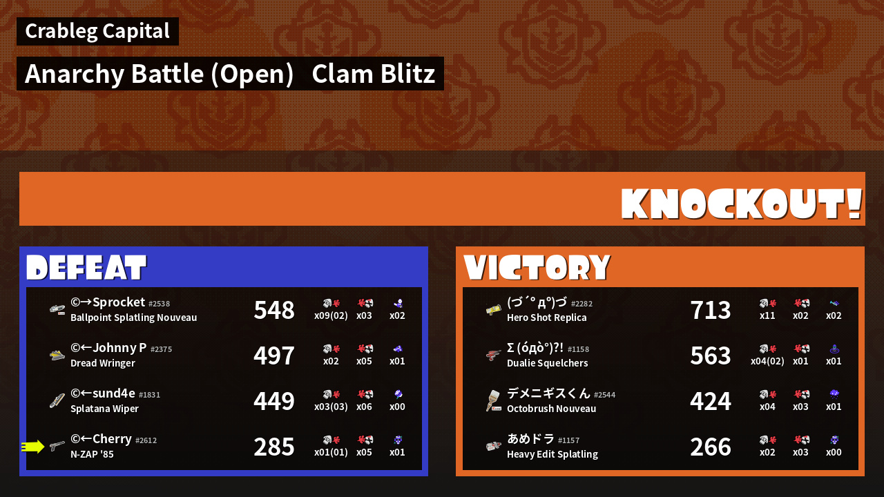 | Mode | Clam Blitz - Anarchy Battle (Open) | ||