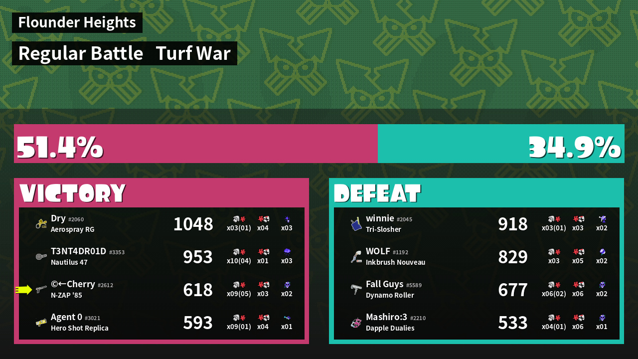 | Medals | #1 Super Jump Spot #1 Splat Assister #1 Ground Traveler | ||