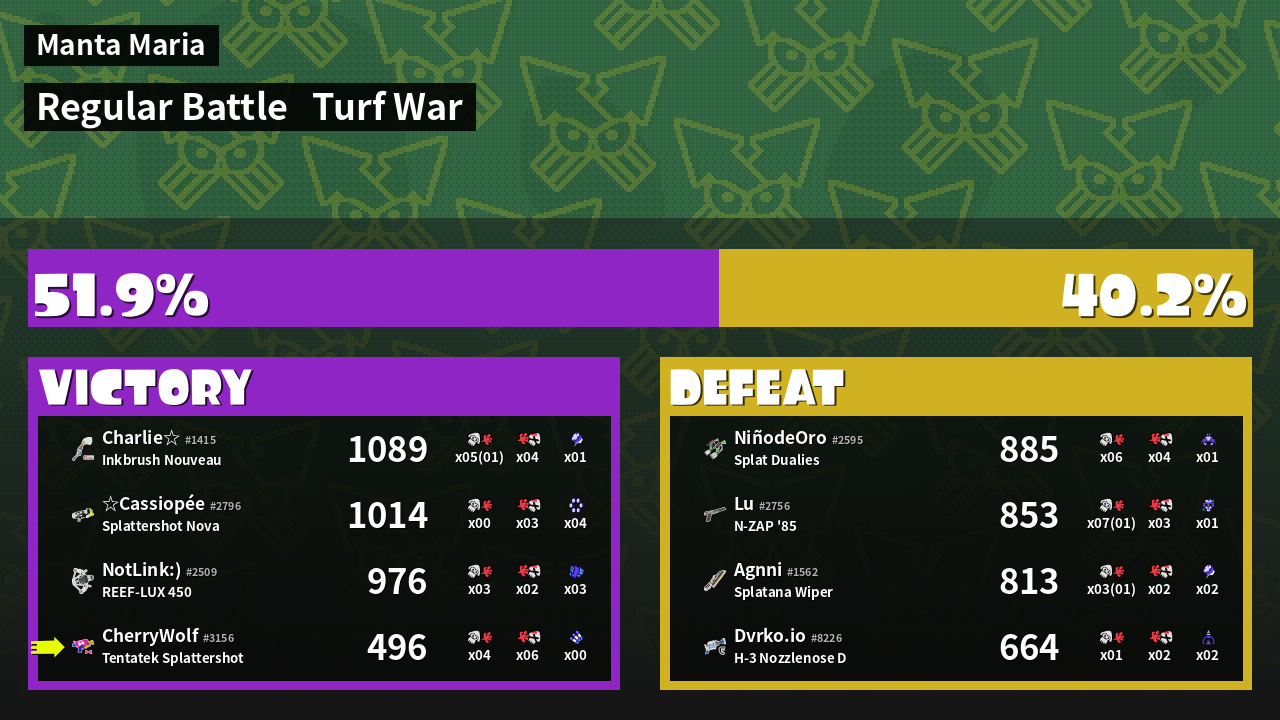 | Medals | #1 Enemy Splatter #2 Overall Splatter #2 Super Jump Spot | ||