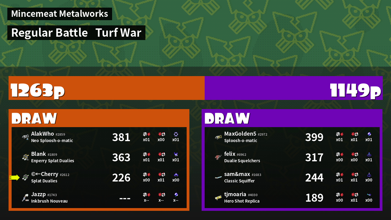 | Mode | Turf War - Regular Battle | ||