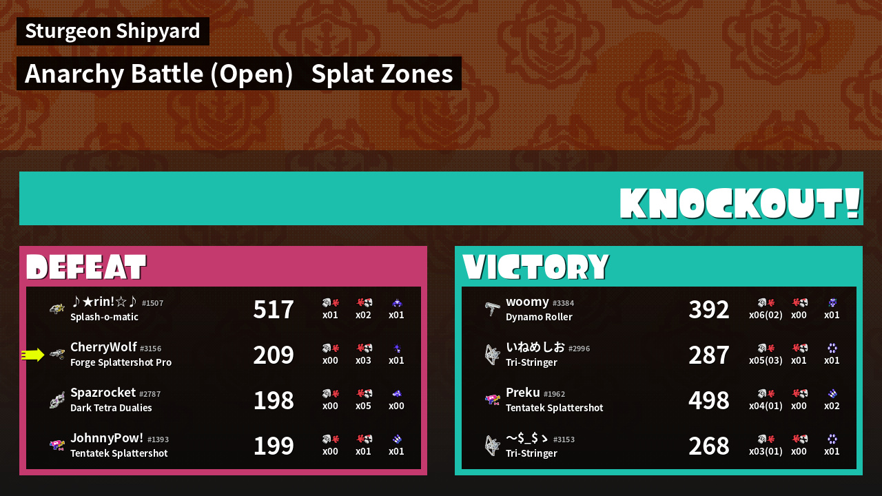 | Mode | Splat Zones - Anarchy Battle (Open) | ||