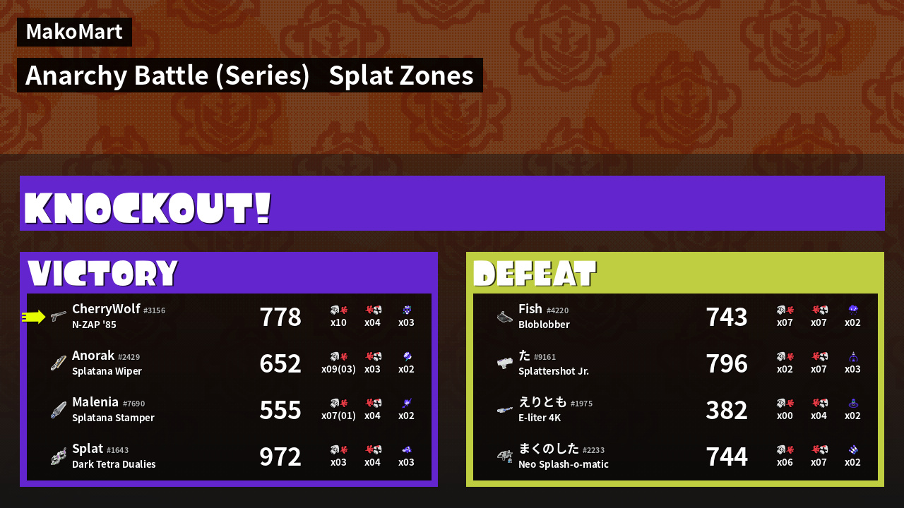 | Mode | Splat Zones - Anarchy Battle (Series) | ||