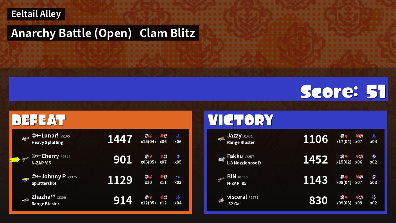 | Mode | Clam Blitz - Anarchy Battle (Open) | ||