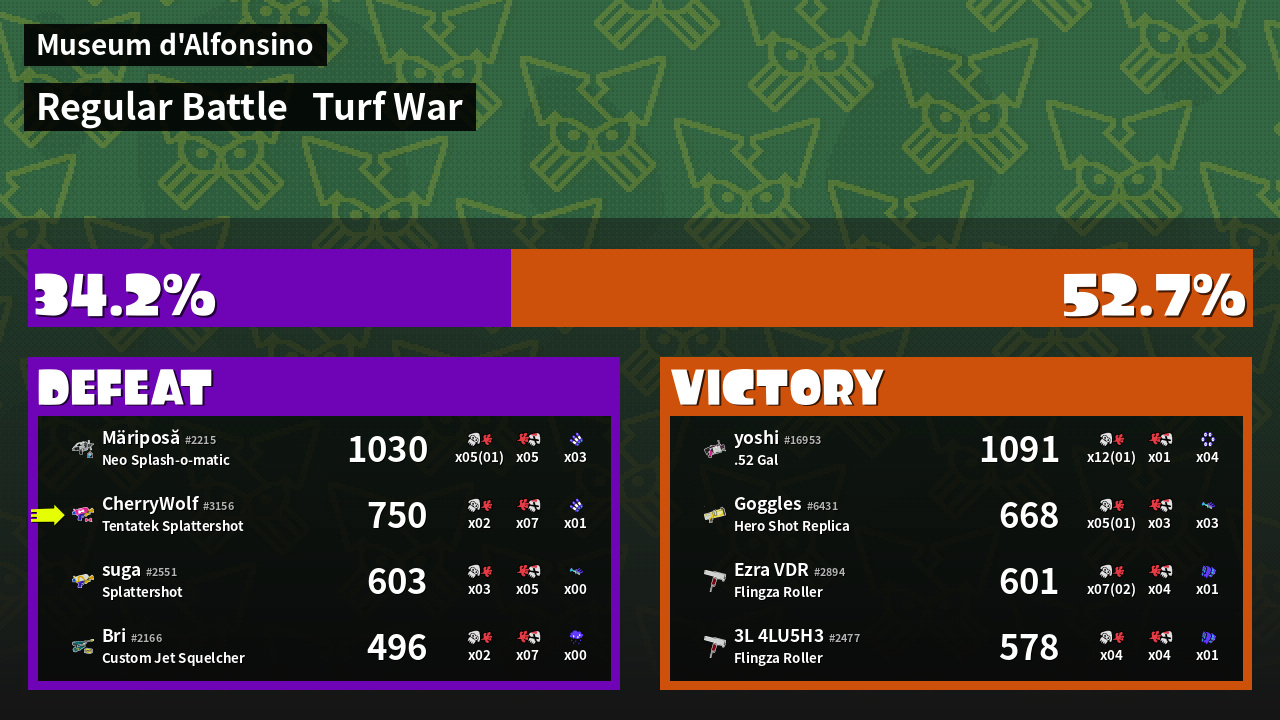 | Mode | Turf War - Regular Battle | ||