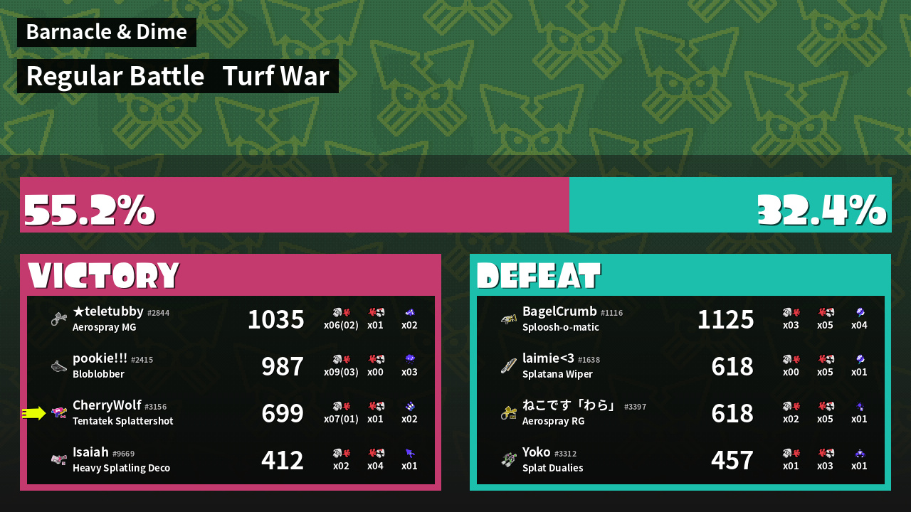 | Weapon | Tentatek Splattershot ( Splat Bomb / Triple Inkstrike) | ||