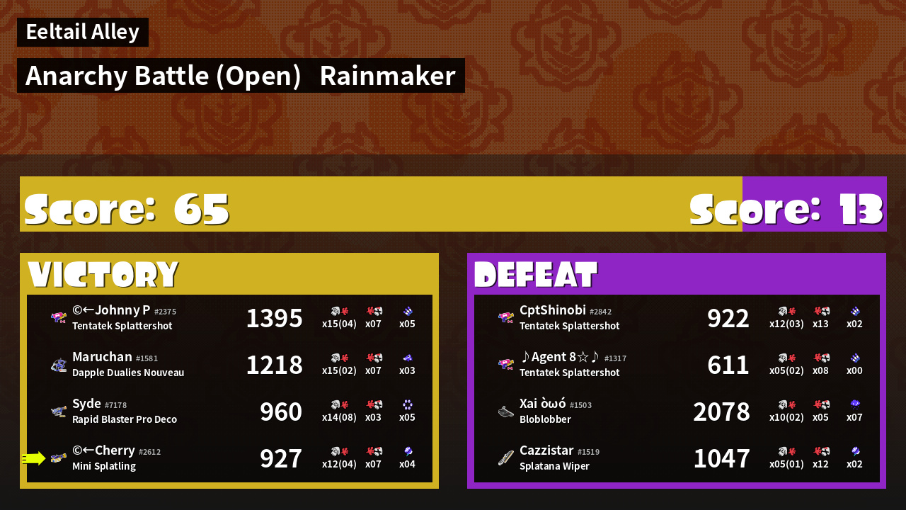 | Mode | Rainmaker - Anarchy Battle (Open) | ||