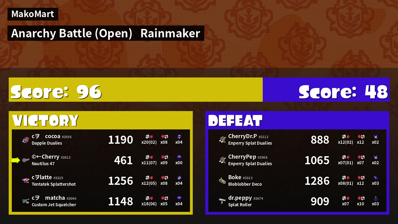 | Mode | Rainmaker - Anarchy Battle (Open) | ||