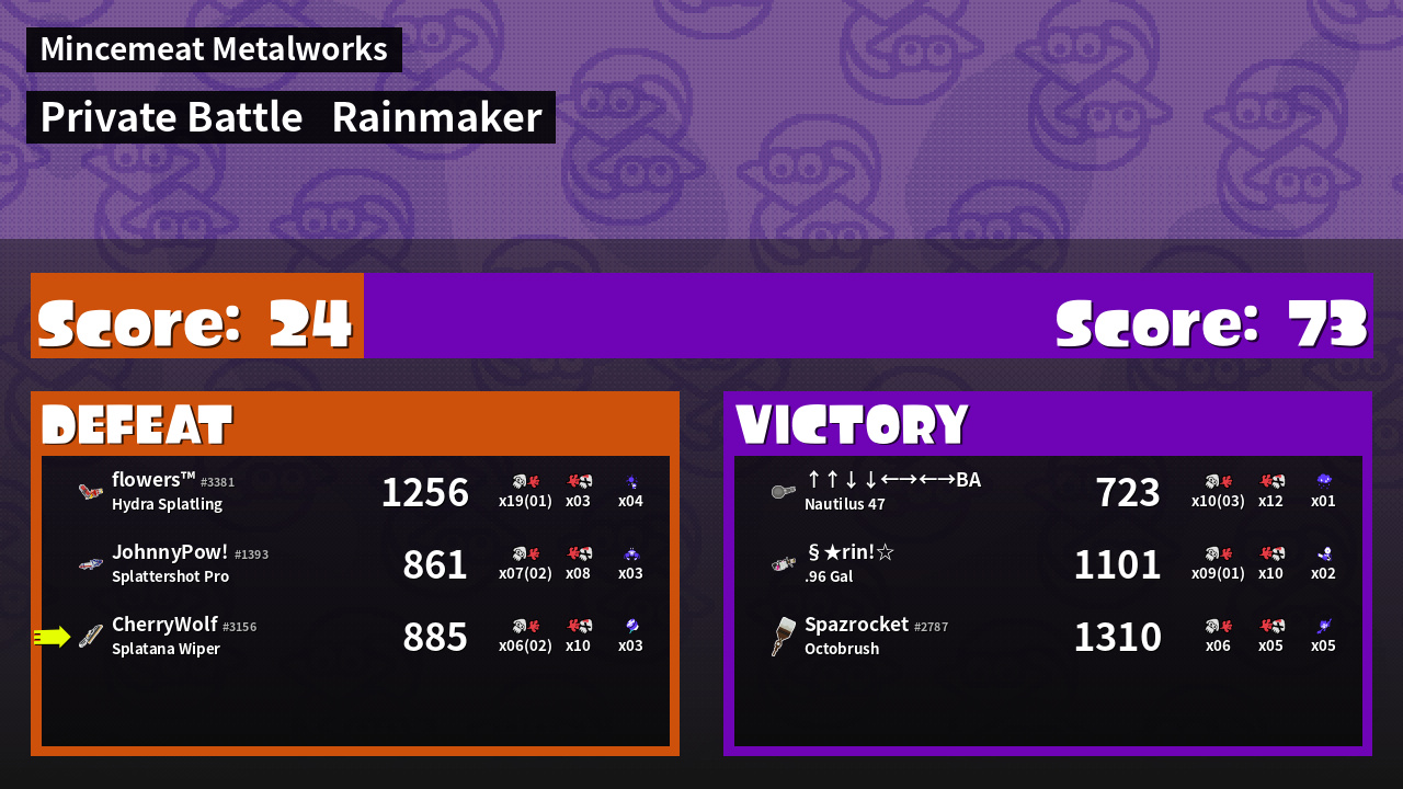 | Medals | #1 Super Jump Spot #1 Splat Assister #1 Ultra Stamp User | ||