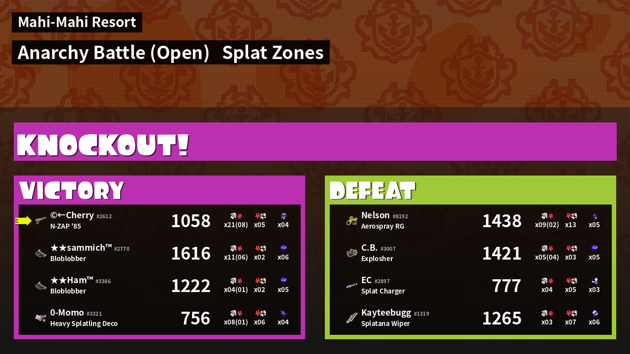 | Mode | Splat Zones - Anarchy Battle (Open) | ||