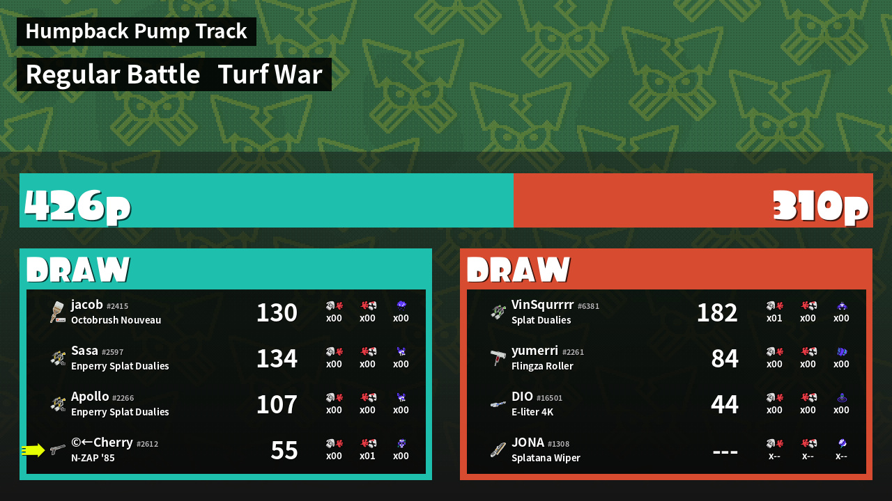 | Mode | Turf War - Regular Battle | ||