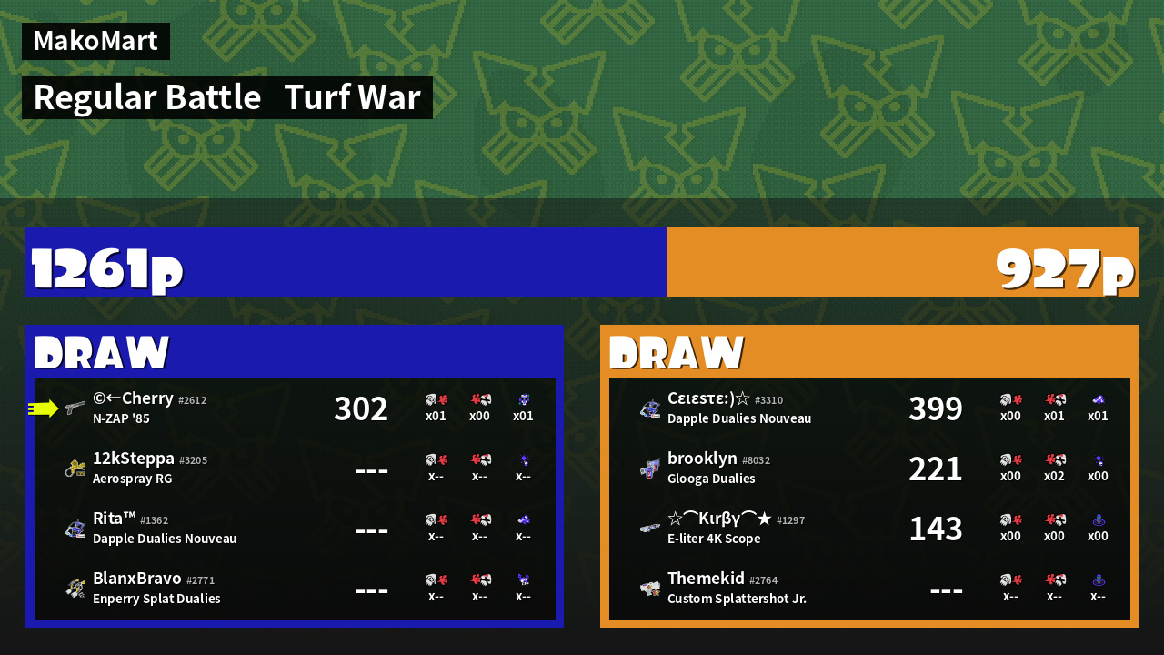 | Mode | Turf War - Regular Battle | ||