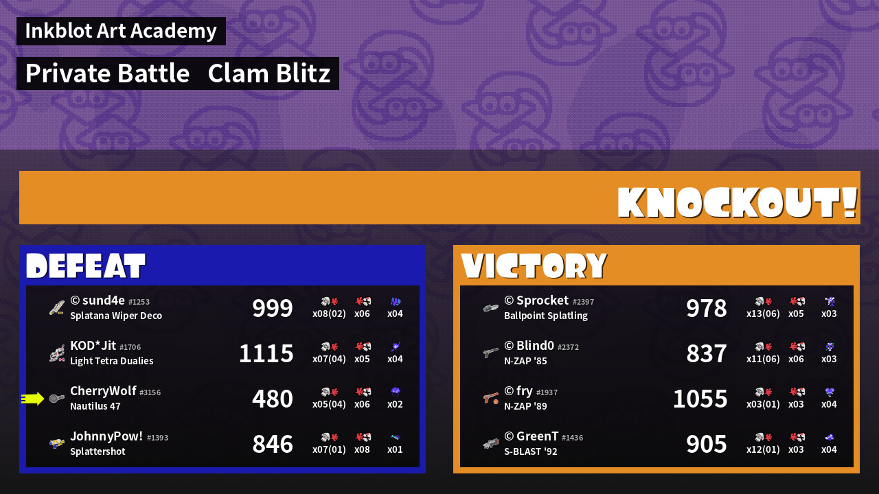 | Medals | #1 Clam Carrier #1 Splat Assister #1 Ink Storm User | ||
