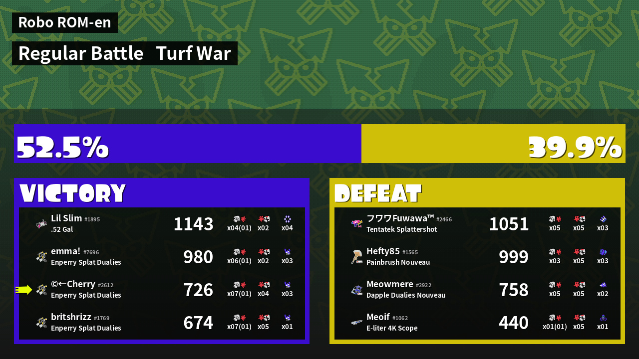 | Weapon | Enperry Splat Dualies ( Curling Bomb / Triple Splashdown) | ||