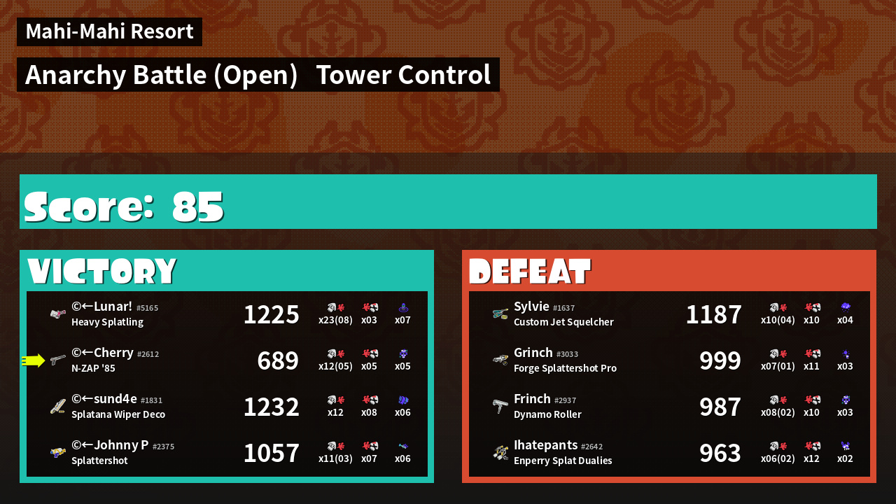 | Mode | Tower Control - Anarchy Battle (Open) | ||