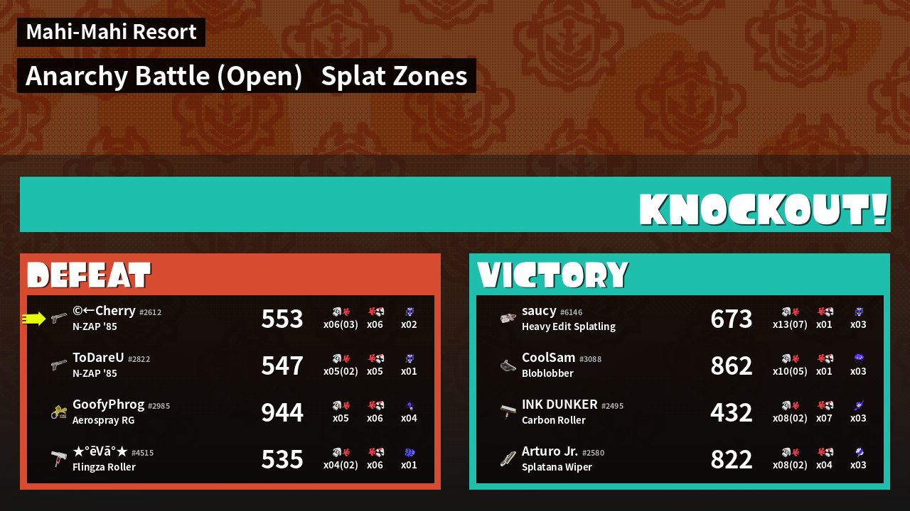 | Mode | Splat Zones - Anarchy Battle (Open) | ||