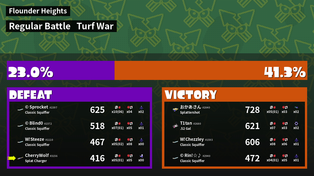| Mode | Turf War - Regular Battle | ||