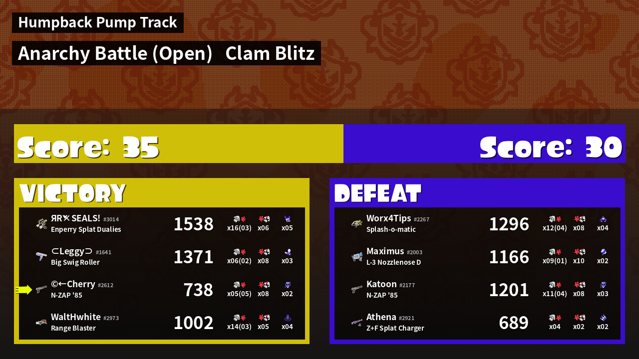 | Mode | Clam Blitz - Anarchy Battle (Open) | ||