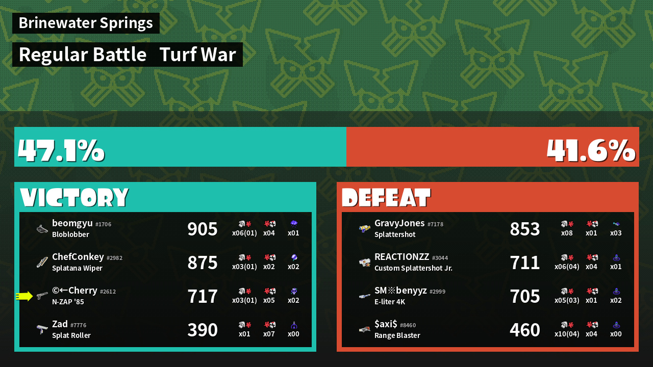 | Mode | Turf War - Regular Battle | ||