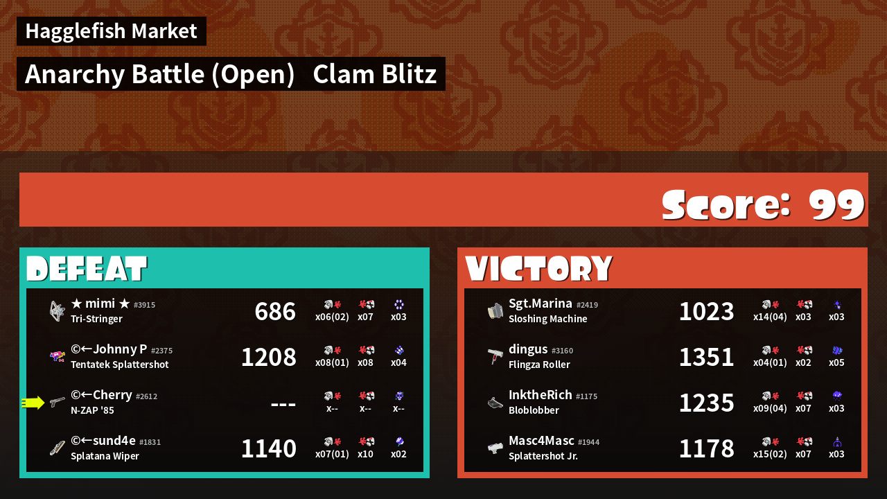 | Mode | Clam Blitz - Anarchy Battle (Open) | ||