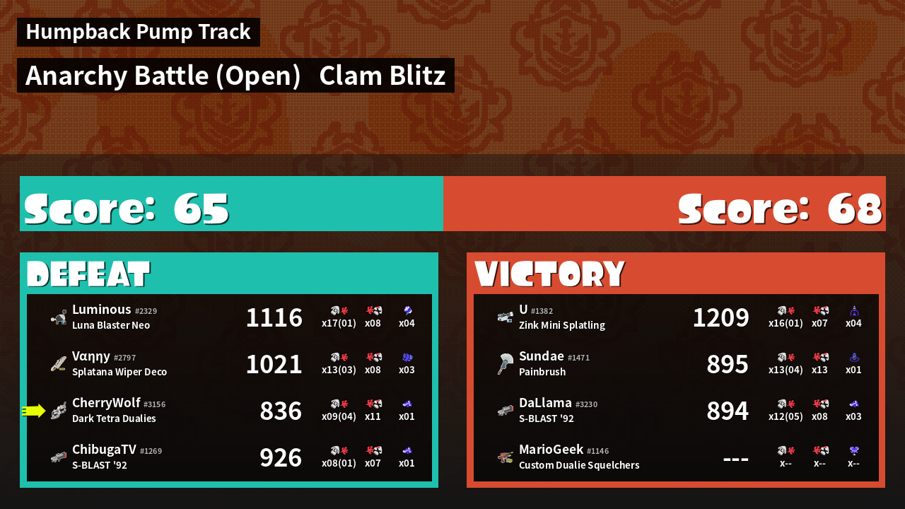 | Mode | Clam Blitz - Anarchy Battle (Open) | ||