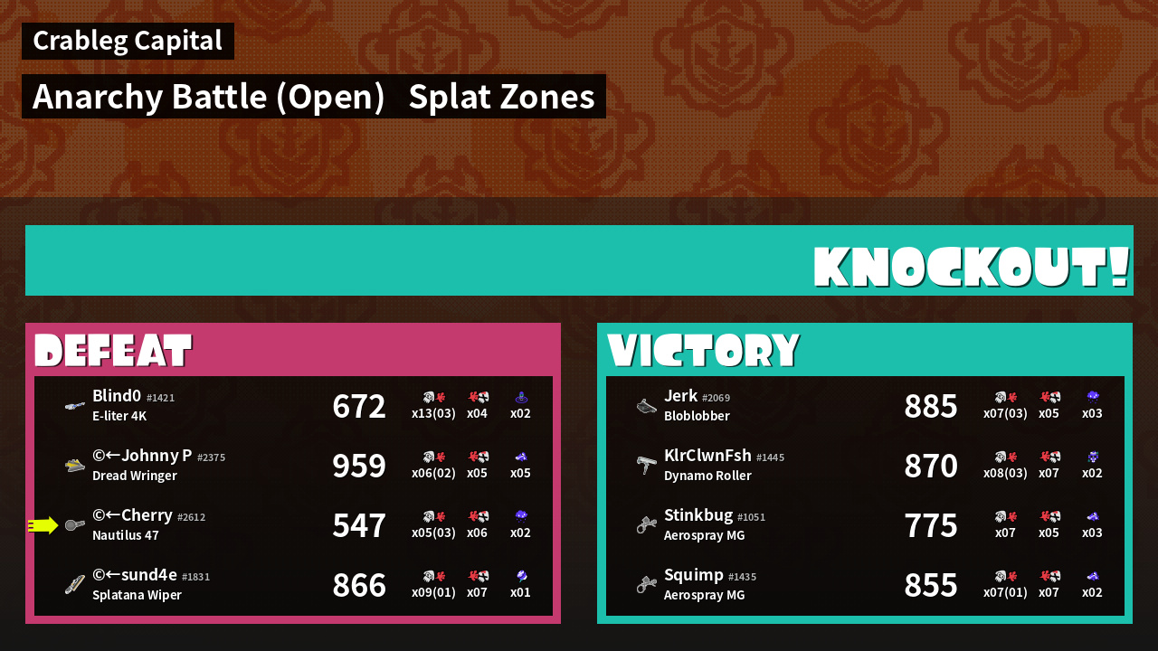 | Mode | Splat Zones - Anarchy Battle (Open) | ||