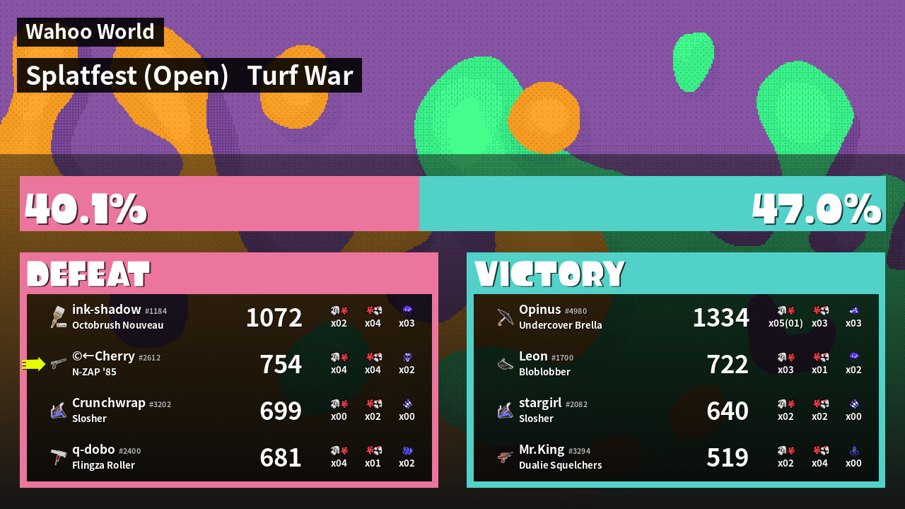 | Mode | Turf War - Splatfest (Open) | ||