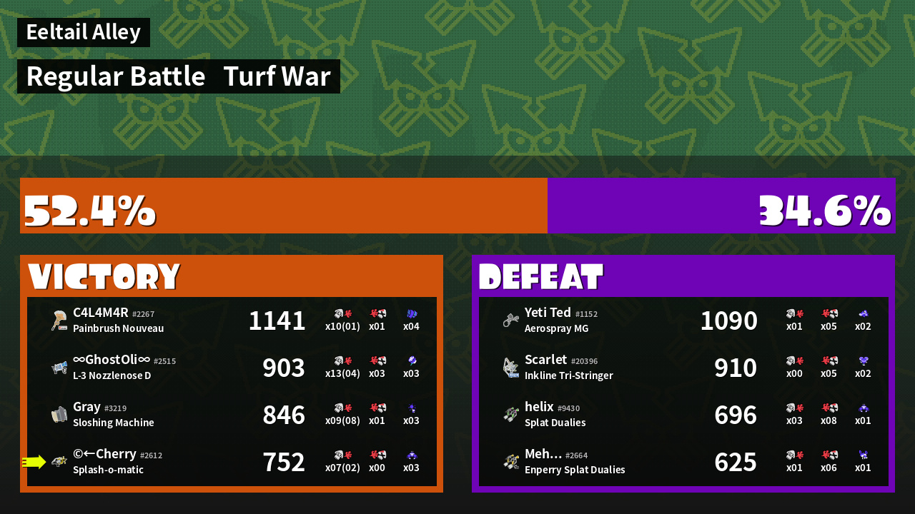 | Mode | Turf War - Regular Battle | ||