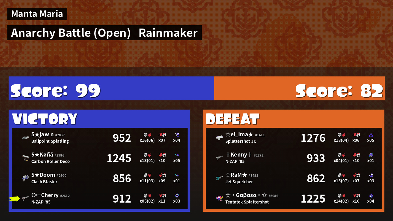 | Mode | Rainmaker - Anarchy Battle (Open) | ||