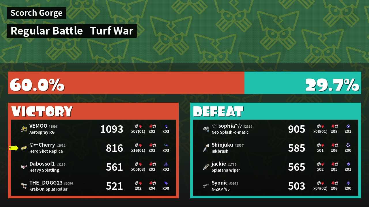 | Medals | #1 Overall Splatter #1 Popular Target #1 Enemy-Base Inker | ||
