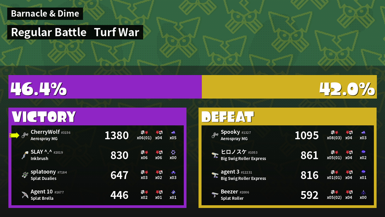 | Weapon | Aerospray MG ( Fizzy Bomb / Reefslider) | ||