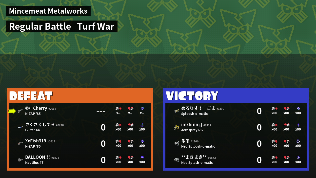 | Mode | Turf War - Regular Battle | ||