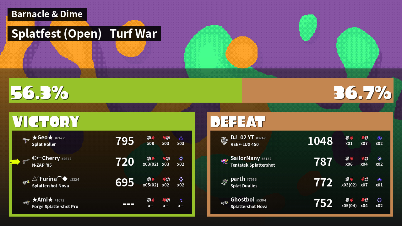 | Mode | Turf War - Splatfest (Open) | ||