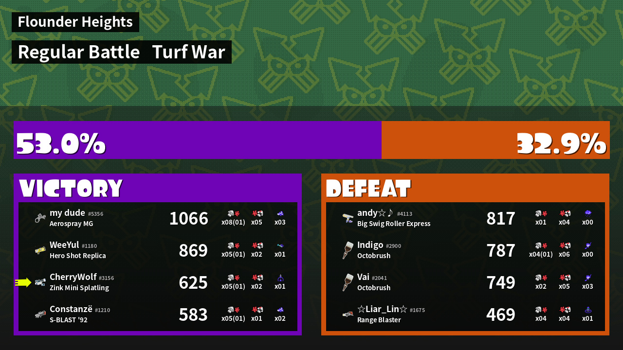 | Medals | #1 Splat Assister #2 Overall Splatter #2 Home-Base Inker | ||