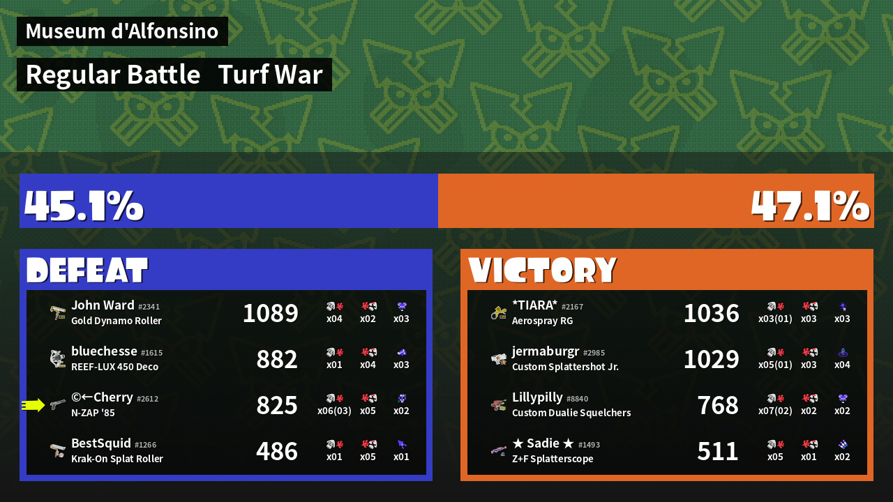 | Mode | Turf War - Regular Battle | ||