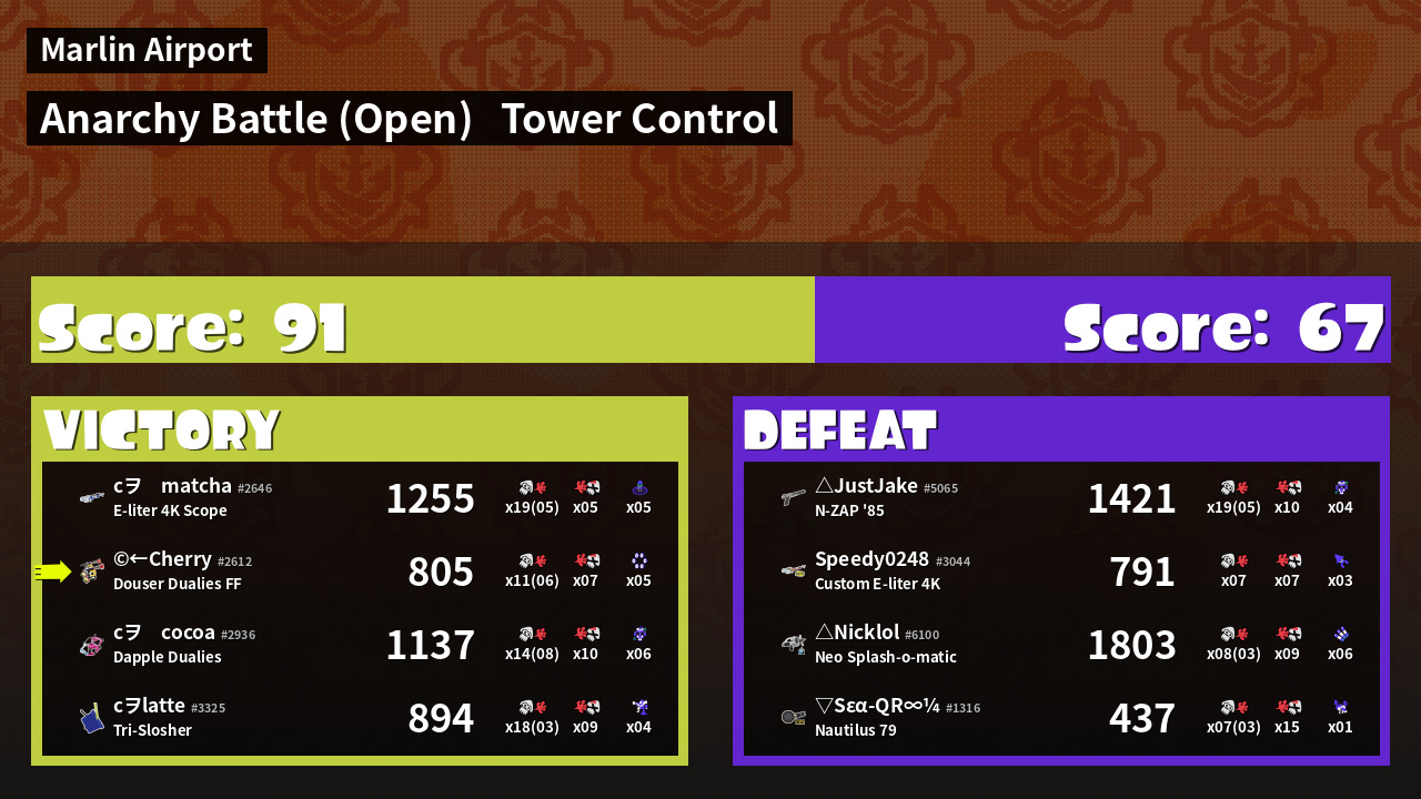 | Mode | Tower Control - Anarchy Battle (Open) | ||