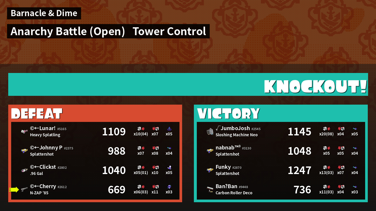 | Mode | Tower Control - Anarchy Battle (Open) | ||