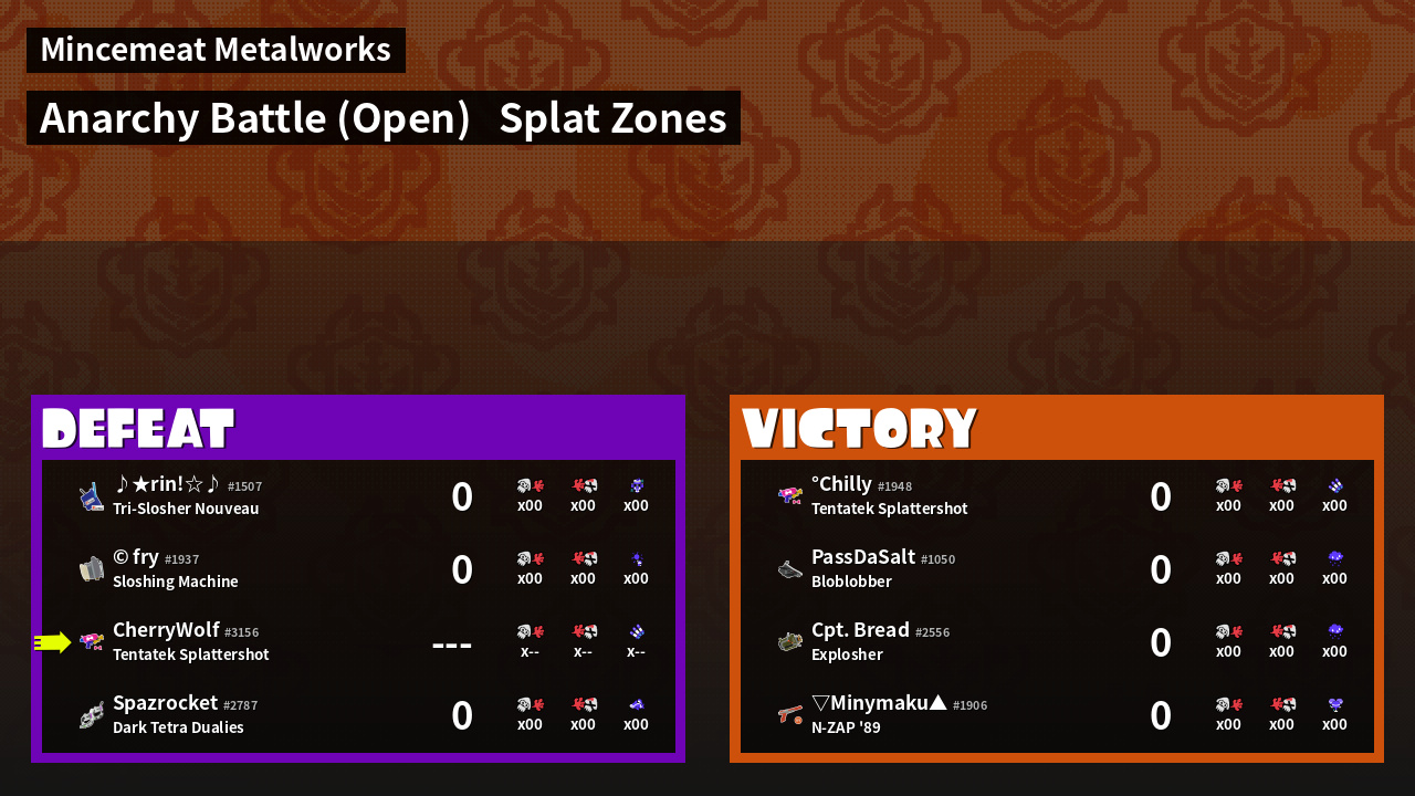 | Mode | Splat Zones - Anarchy Battle (Open) | ||