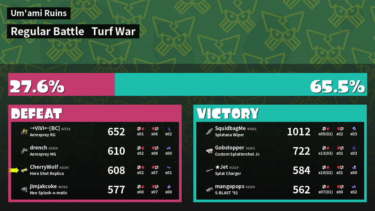 | Medals | #1 Overall Splatter #1 Enemy Splatter #1 Damage Taker | ||