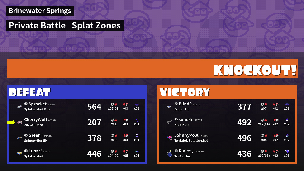 | Mode | Splat Zones - Private Battle | ||