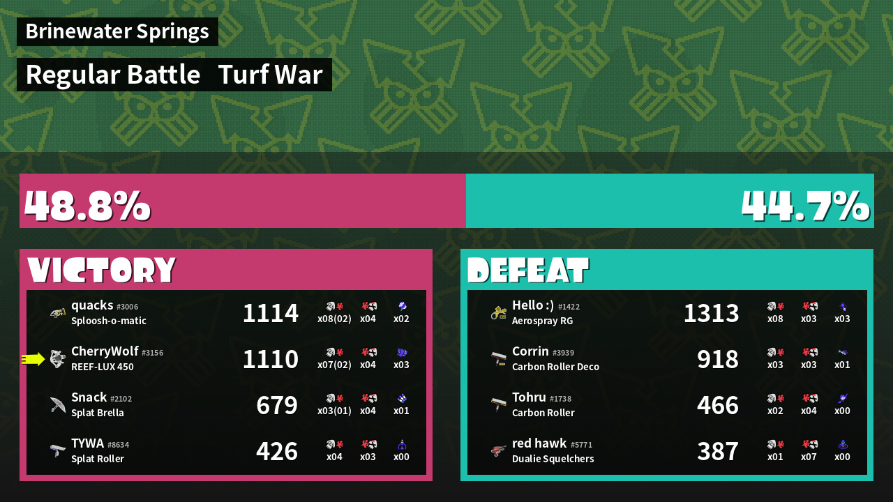 | Medals | #1 Super Jump Spot #1 Splat Assister #2 Overall Splatter | ||