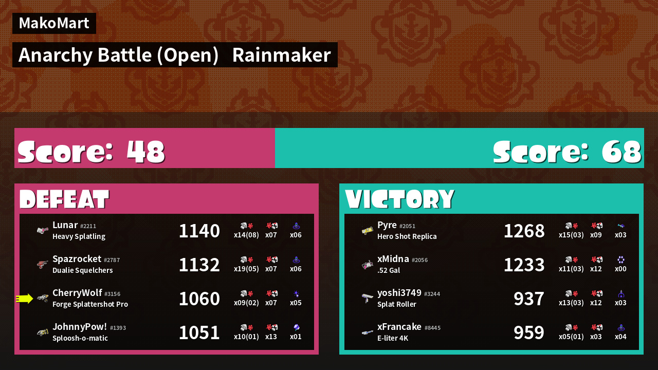 | Mode | Rainmaker - Anarchy Battle (Open) | ||