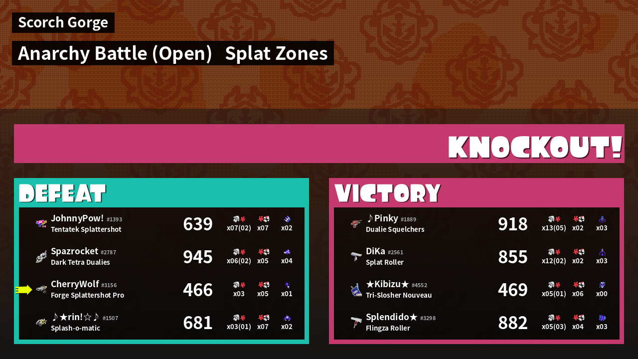 | Mode | Splat Zones - Anarchy Battle (Open) | ||