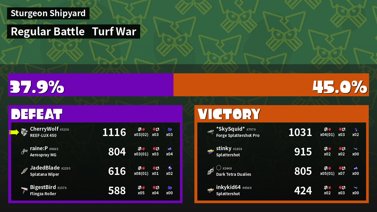 | Mode | Turf War - Regular Battle | ||
